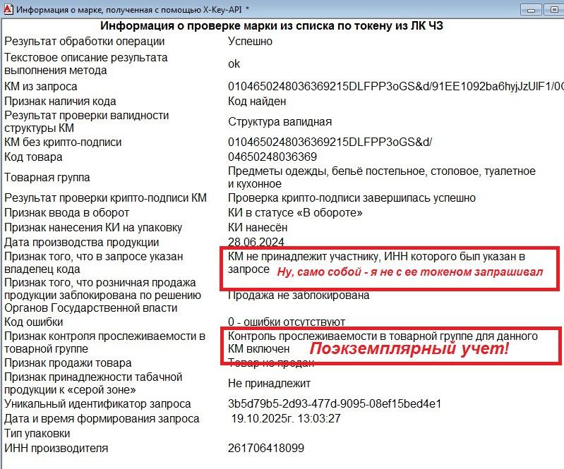 Да, все верно... Было в начале учета марок по этой ТГ, "типа акция", промаркируйте остатки в том числе и в рознице, до какой-то даты Х... Типа, как-то это должно было повлиять на "безопастность" продаваемого товара... (Как???) :-( Это был просто способ дособрать неполученные деньги за марки, на товары, которые уже в продаже. Ладно у производителей, тут, как-то понятно, ну... у перекупов, еще как-то с натяжкой можно попробовать обосновать... Но, маркировать остатки товара в рознице - тут только "жадность", больше нет обоснований - марок заказывали на маркировку таких остатков, приобретенных "непонятно где" тысячами, и это только у меня... А в масштабах страны, цифры даже представить трудно. Конечно, разве можно было упустить "такой лакомый кусок" :-( Но, "маркировка остатков по упрощенной схеме" шла с использованием GTIN-ов специальных, выдаваемых для этих целей самим ЦРПТ - они все начинались на "029***********", типа внутренние от самого ЦРПТ... И даже для этого магазинчика, я в свое время заказал и напечатал несколько тысяч марок, на максимум десяток таких GTIN... Но, там явно было не десяток разных карточек товаров на эти "псевдо-марки"... И ведь работало, сабжевой проблемы почему-то не возникало... Возможно, Розница понимала, что эти марки начинались на "029", и соответственно это маркировка по упрощенной схеме, и ни куда их привязывать не нужно... Поэтому и проблемы не возникало. Тут-же, марки явно не по упрощенной схеме должны были выдаваться, а на конкретный товар, так, как GTIN начинается на "046"... По GTIN из марки, в ЦРПТ есть конкретная карточка товара: ![]() Естественно, она будет одной и той-же для всех этих 4-рех товаров(ну, это 4 у моего клиента, возможно их значительно больше)... Ничего общего эта карточка не имеет с наименованиями конкретных товаров на этикетках... Да, там в названии товара есть приписка - "в ассортименте"... Но, с моей точки зрения, товар в ассортименте - это практически один и тот- же товар, с минимальными различиями(ну, там цвет, запах, вкус :-) ) не влияющими на розничную цену (она ОДНА для всех товаров этого ассортимента), и так-же продающийся на кассе как один товар в ассортименте... Но, тут, товары разные, с РАЗНЫМИ розничными ценами, и соответственно карточка в 1С своя на каждый... Неужели только у меня такой вопрос возник? Должно же быть какое-то решение в типовой конфе? PS Вообще, ИМХО - привязка и особенно контроль соответствия марки конкретному товару в своей базе - лишний гиморой... Как минимум, должен быть какой-то способ отключать этот контроль, когда он не требуется. Типа "галочка" в карточке, "не контролировать соответствие марки этому товару"... С точки зрения ЧЗ - тут ни каких проблем не будет - им по барабану наша база, и все, что в ней творится... Они получили в чеке марку, и по ней списали марку с карточкой, которая у них к ней привязана... Цены их тоже не интересуют (ну, за исключением табачки - там МРЦ)... Как кто решает такие проблемы? Может все-таки есть какое-то отключение контроля принадлежности марки конкретному товару, и я просто не нашел его? Еще раз - конфа "базовая", и "допиши сам" тут не прокатит. |