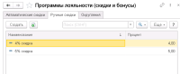 (8) Если я все верно понимаю, то "Ручная скидка" и Автоматическая скидка с условием "Активирована вручную" - разные вещи. Так как в документе ЧекККМ его можно установить, и встанет он в автоматическую скидку, как и в документе "Заказ клиента"
