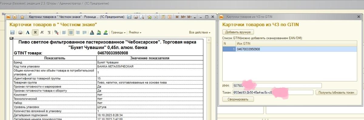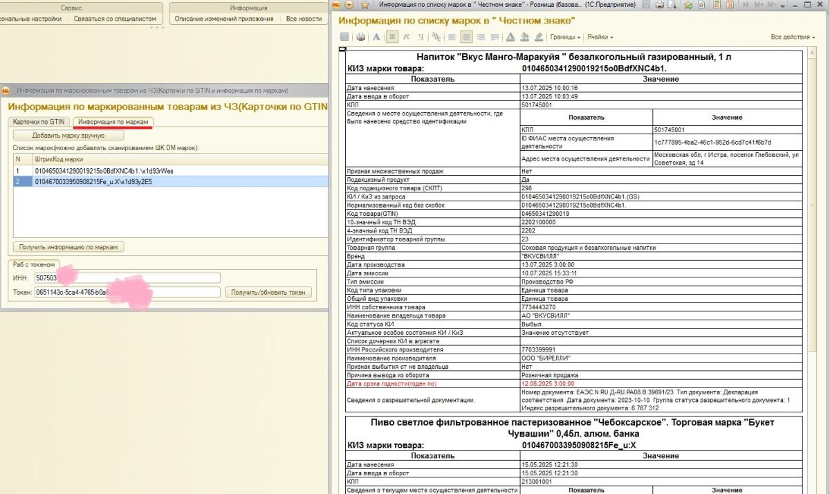 А эта "игрушка", отчетик, который можно запустить из любой конфы, связка с типовыми только по сканеру через БПО который... Остальное все свое. (52) ну, это само собой: ДатаОконч = ТекСертификат.ValidToDate; Если ДатаОконч > ТекущаяДата Тогда Только тогда добавляется в список. PS Добавил к карточкам по GTIN, еще инфу по марам: ![]() Ну, а чего не сделать - токен есть, только еще один запрос и ПФ прикрутить :-) |