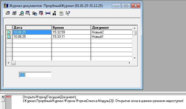 Если Процедура запускается при редактирования Поля ввода (которое находится например в журнале документов) то 1с ругается на код открытьФорму(док.ТекущийДокумент()); сообщением "Открытие окна в данном режиме недоступно!" если же в этом же журнале этот же код выполнять из кнопки - всё ок. Но хочется документ открывать сразу при редактировании поля ввода а не через кнопку ) |